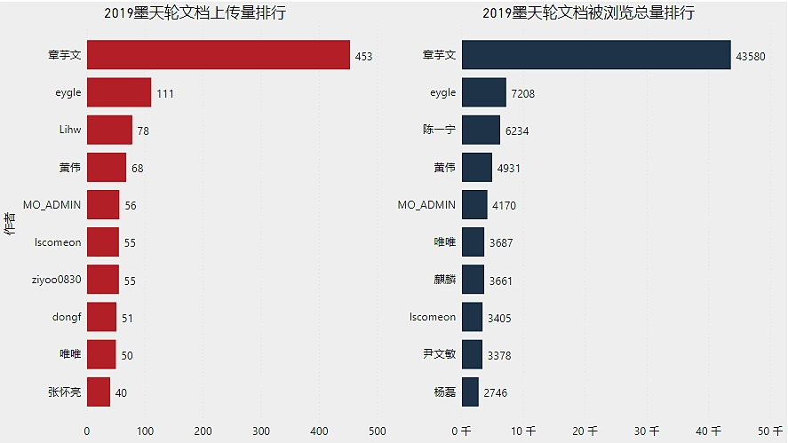 哪些作者上传的最多?哪些作者的文档被浏览的最多?