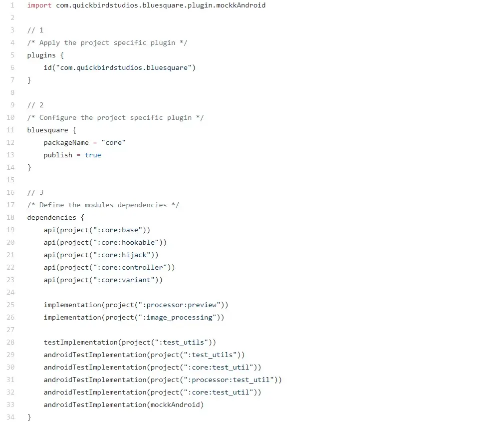 上述配置可以为我们应用 Android Library Plugin 并配置了android代码块和默认依赖