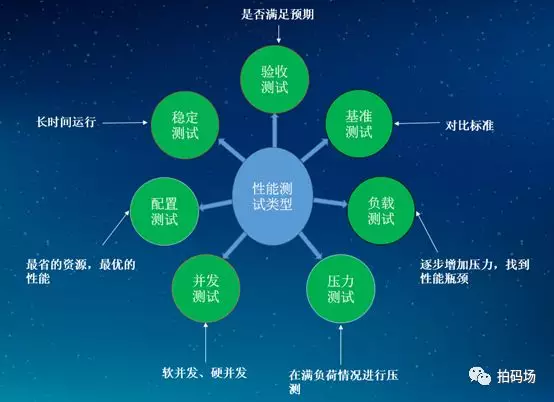性能测试场景主要有:能力验证、规划能力、性能调优、缺陷发现、性能基准比较。