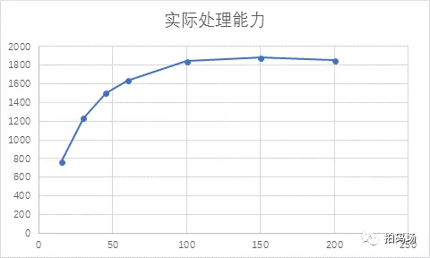 负载测试时,发起压力与实际处理能力的对比曲线如下: