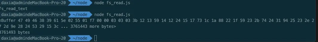 如上,当读取二进制文件时,不传入文件编码,回调函数的data参数将返回一个Buffer对象,在Node.js中,Buffer对象就是一个包含零个或者任意个字节的数组。