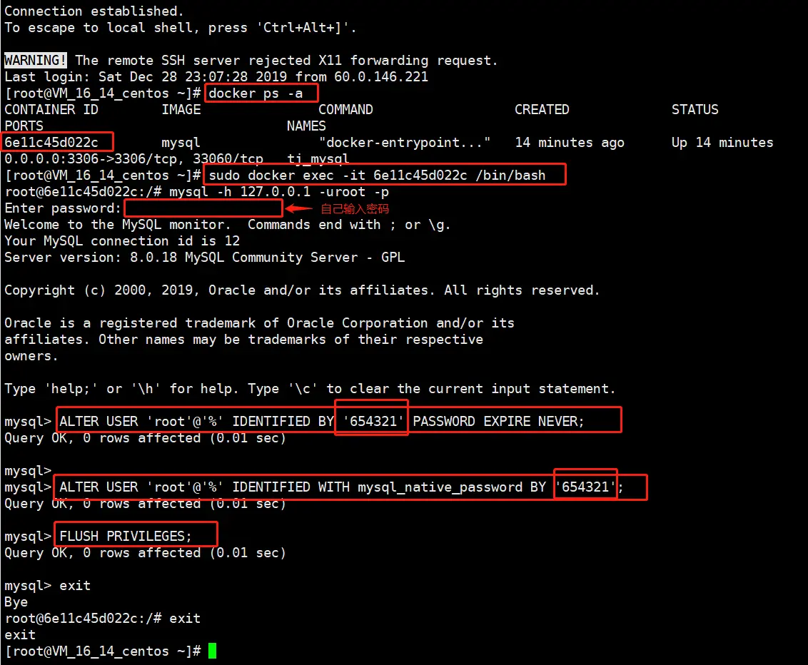 我的容器id 6e11c45d022c 我的密码设置 654321 你们对应替换即可