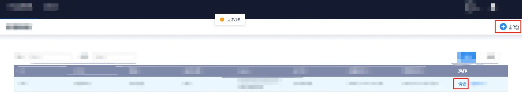 可以看到第二张图,我们给这个角色为测试的用户,对某个页面的功能进行了权限设置,点击确定后,角色为测试的用户将无法使用该页面的编辑以及新增功能。