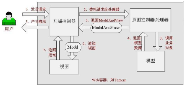 当我们在浏览器中输入 http://localhost:8080/hello 后,浏览器会发送请求到前端控制器,对应图上的步骤1.前端控制器可以理解为 DispatcherServlet.