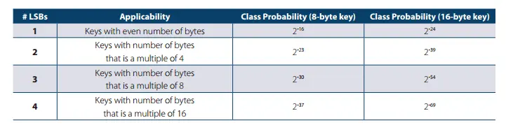 如果一个q-class(q 指代LSB的数字)的密钥被使用,那么会发生以下的问题: