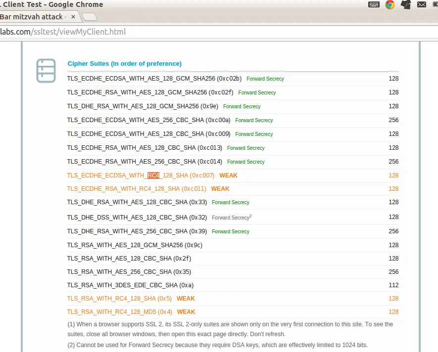 $ google-chrome–cipher-suite-blacklist=0x0004,0x0005,0xc011,0xc007 @windows