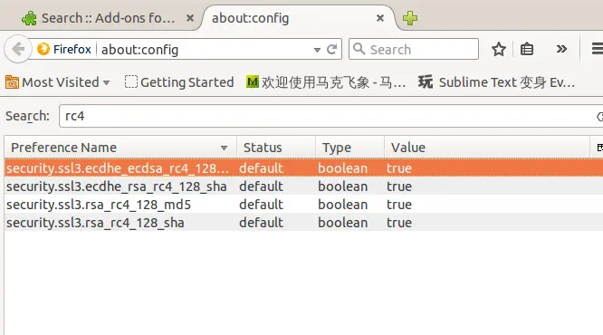 /Applications/GoogleChrome.app/Contents/MacOS/GoogleChrome–cipher-suite-blacklist=0x0004,0x0005,0xc011,0xc007 对于firefox(全平台)