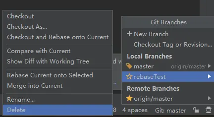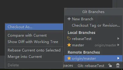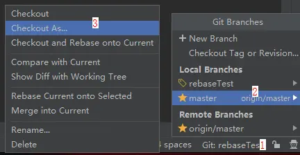 - 点击Rebase并在交互式rebase菜单中,将第一个选为pick,后面的都选为squash,点Start Rebasing