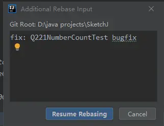 - 在Additional Rebase Input中编辑下合并以后的commit message,并点击Resume Rebasing