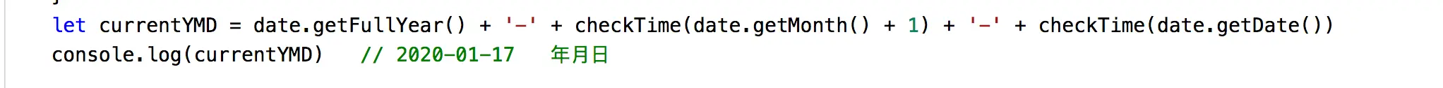 let currentYMD = date.getFullYear() + '-' + checkTime(date.getMonth() + 1) + '-' + checkTime(date.getDate())