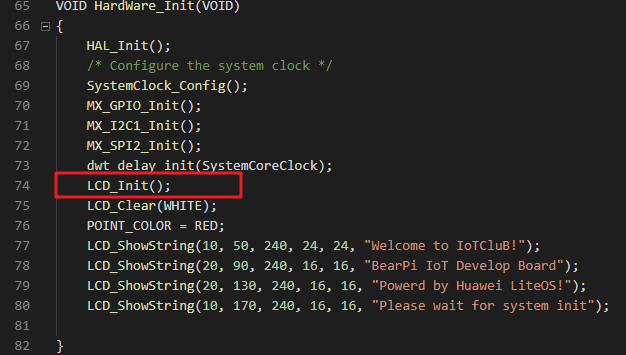 在 main.c 中的 HardWare_Init()函数中添加 LCD 初始化代码: