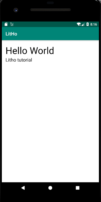 LithoView相当于Android中ViewGroup,是容纳View(在Litho中称为组件)的容器,,上面这个就是用LithoView显示Text组件的。