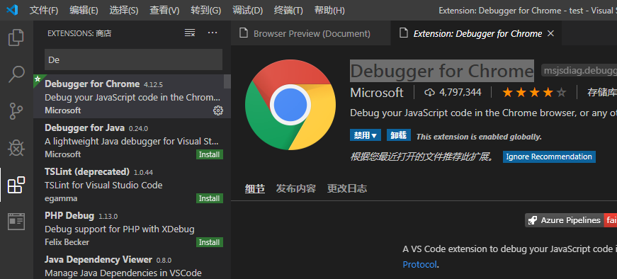 同样我们在插件商店里直接下载Debugger for Chrome。