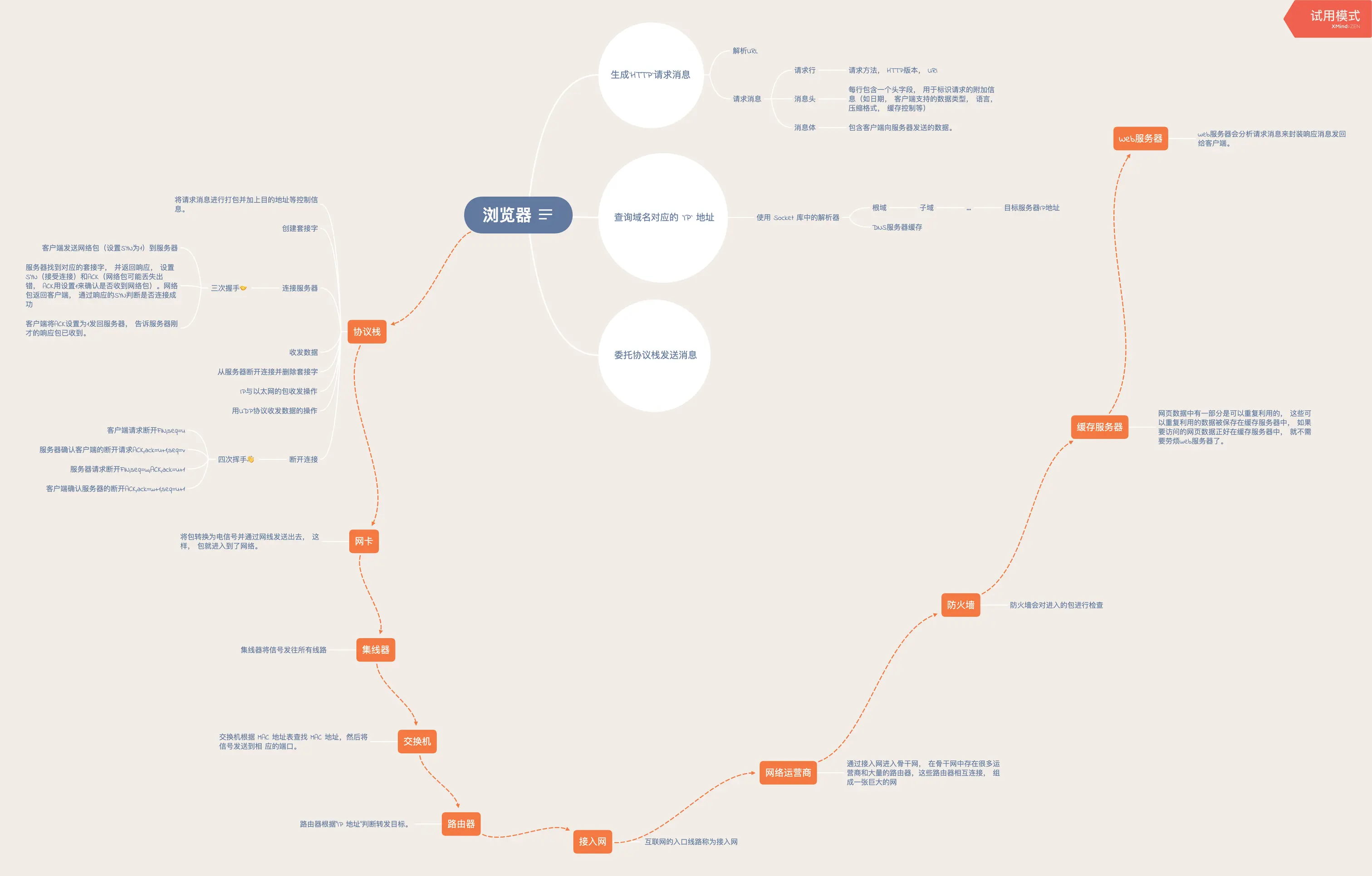 浏览器: 负责将请求消息委托给操作系统中的网络控制软件。