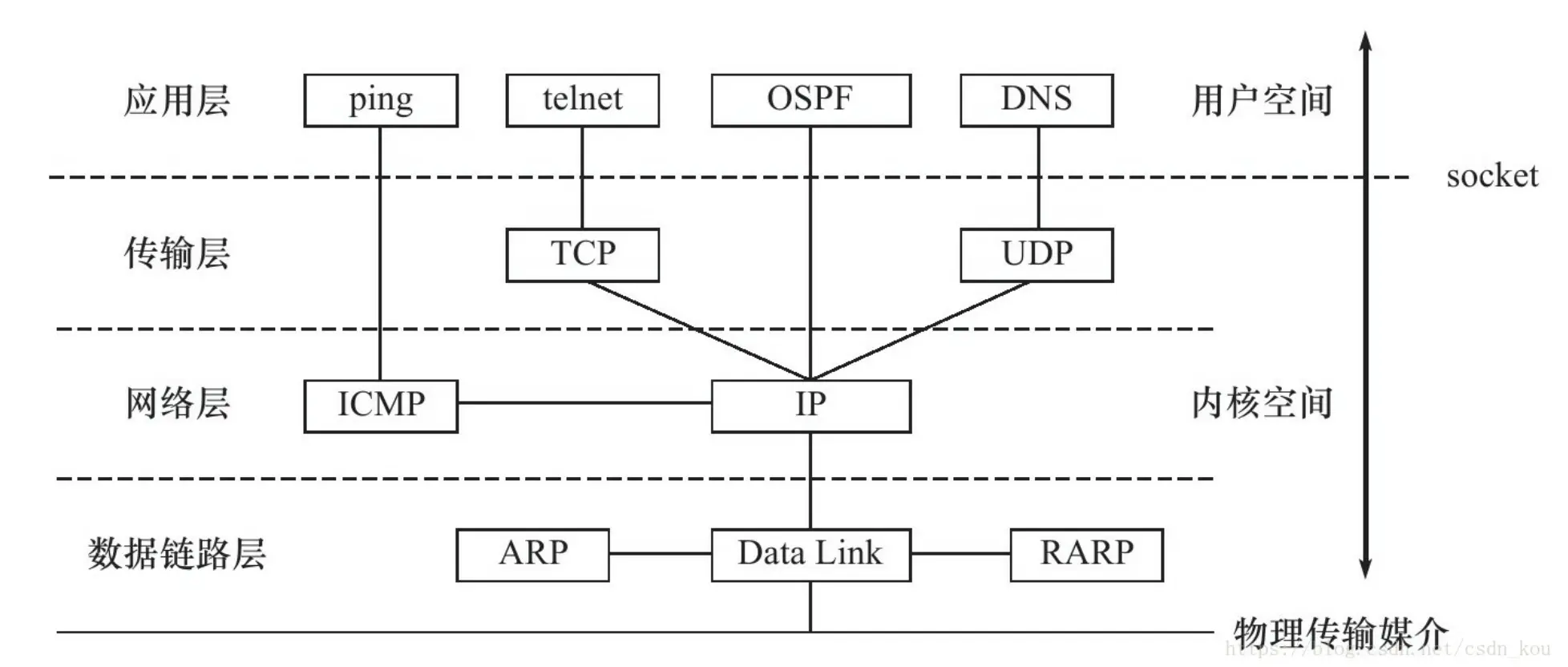 - 下: 用IP协议控制网络包收发操作的部分。