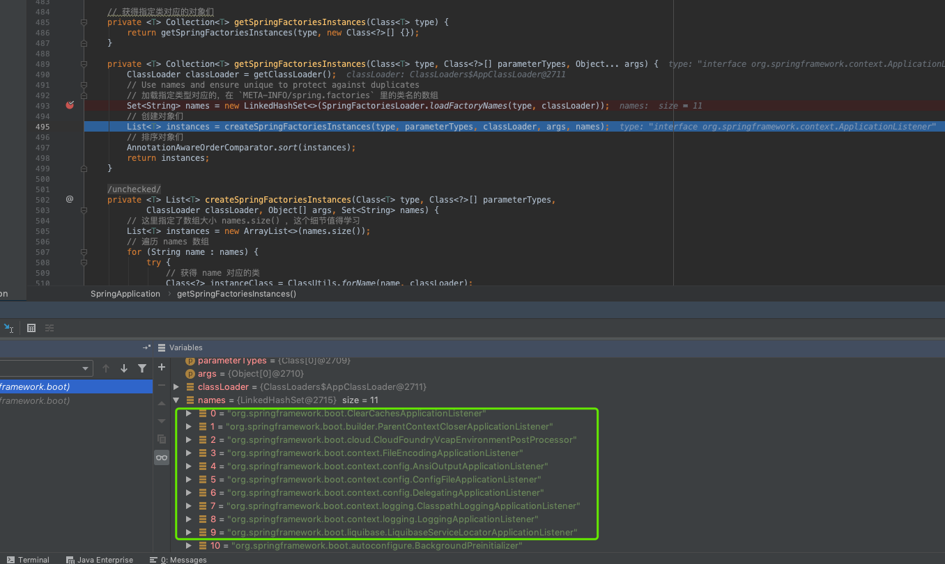 判断当前这个event是否是 ApplicationEnvironmentPreparedEvent,或者是否是 ApplicationPreparedEvent,都不是的话,会返回false,也就是说对该事件不感兴趣,所以不会将 ConfigFileApplicationListener 添加到上述的感兴趣监听器列表中。