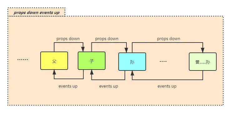 我们已经知道了 "props down events up",但日常的业务远远不止父子之间的“交互”,例如:子孙之间、曾孙之间、曾曾孙之间……!,我该如何想我的下级传递命令?下级做好了一件事,如何向上级报告?情况就越演越烈。
