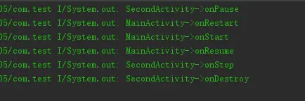 SecondActivity中的按钮后,得到以下输出: - 重新运行程序,点击