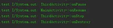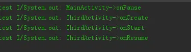 ThirdActivity中的按钮后,得到以下输出: - 重新运行程序,点击