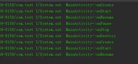 Manifest中进行设置,竖屏切到横屏(横屏再切回到竖屏,输出是和下面一样的,也就是说会回调2次): 可以看出旋转屏幕后,Activity被销毁,然后重新创建,此时就算重写了onConfigurationChanged方法,也不会调用此方法 - 在
