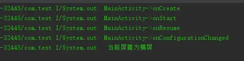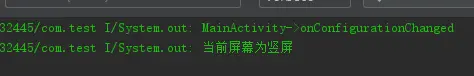 Manifest中设置MainActivity的configChanges="orientation|screenSize",并重写onConfigurationChanged方法,会得到以下输出: