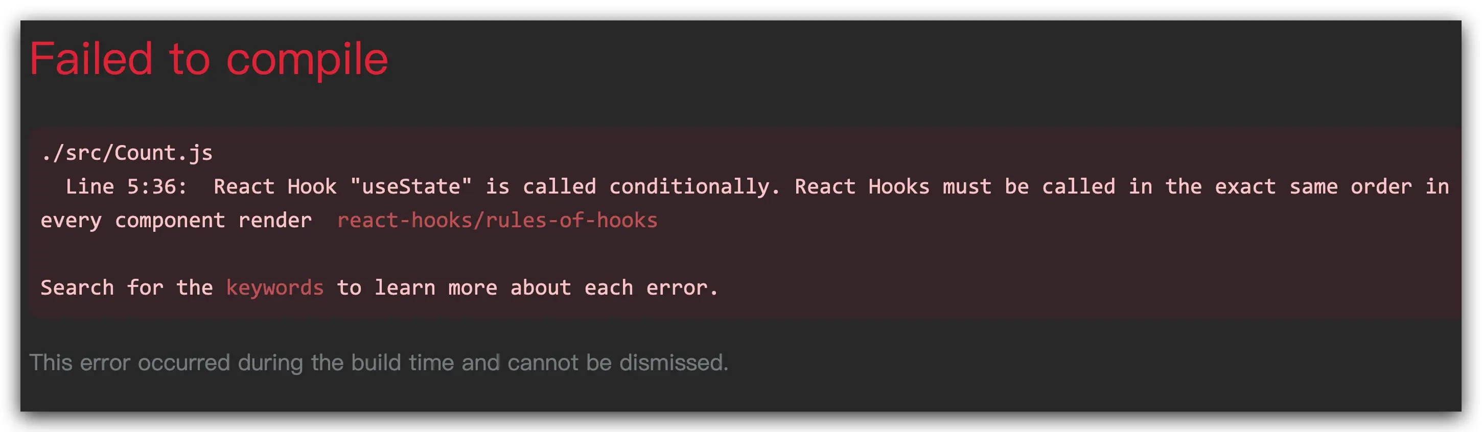 下面是把 useState 放在 if 条件语句中,运行直接被拒绝,即使没有不被允许,我们也不该这么写。