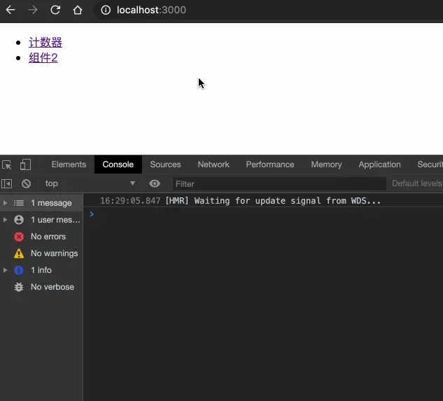 1、点击 计数器 ,加载 Count 组件,两个 effect 都执行并打印。