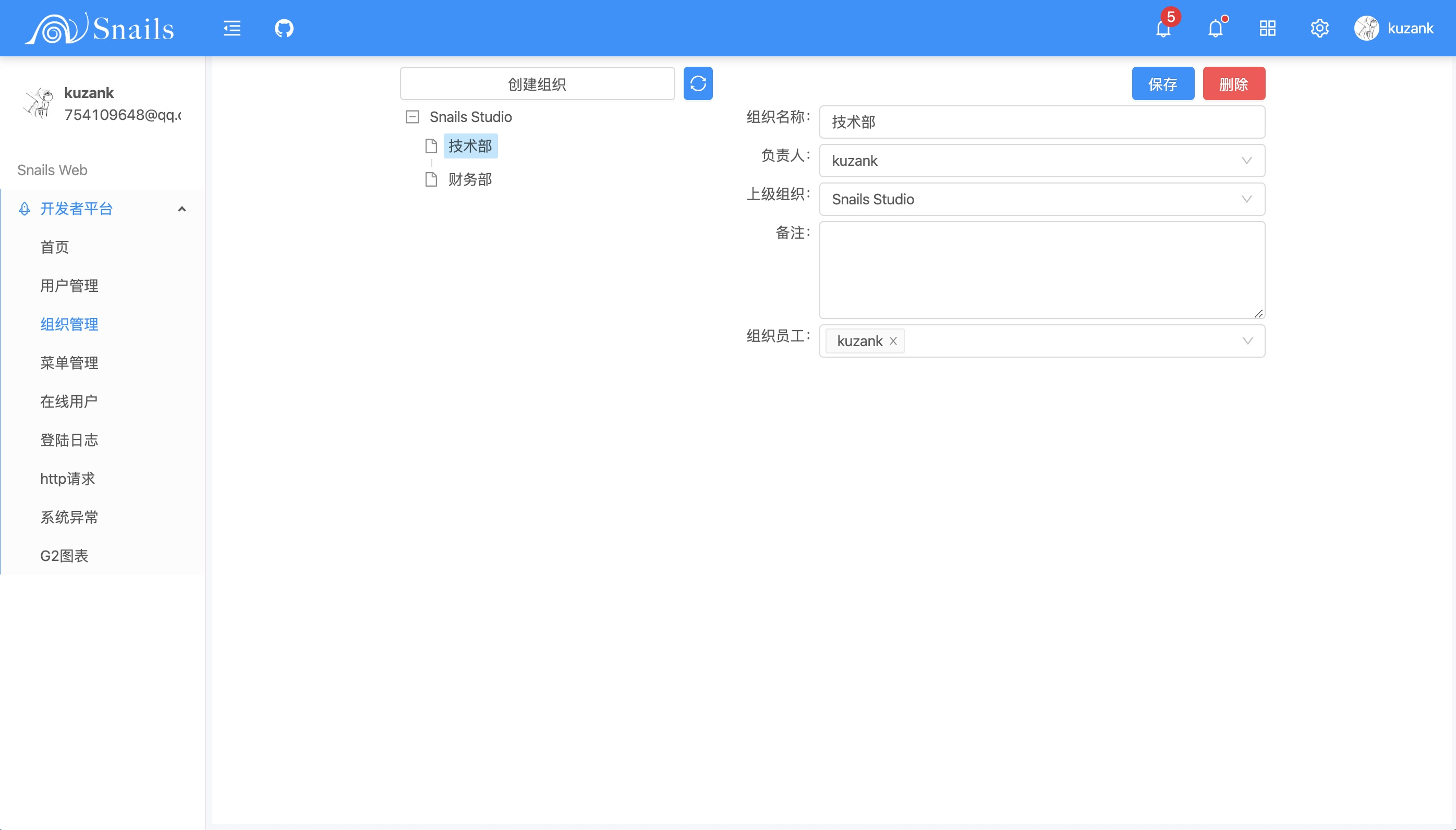 | kuzank | kuzank | 123456 | 所属组织:Snails Studio > 技术部 |