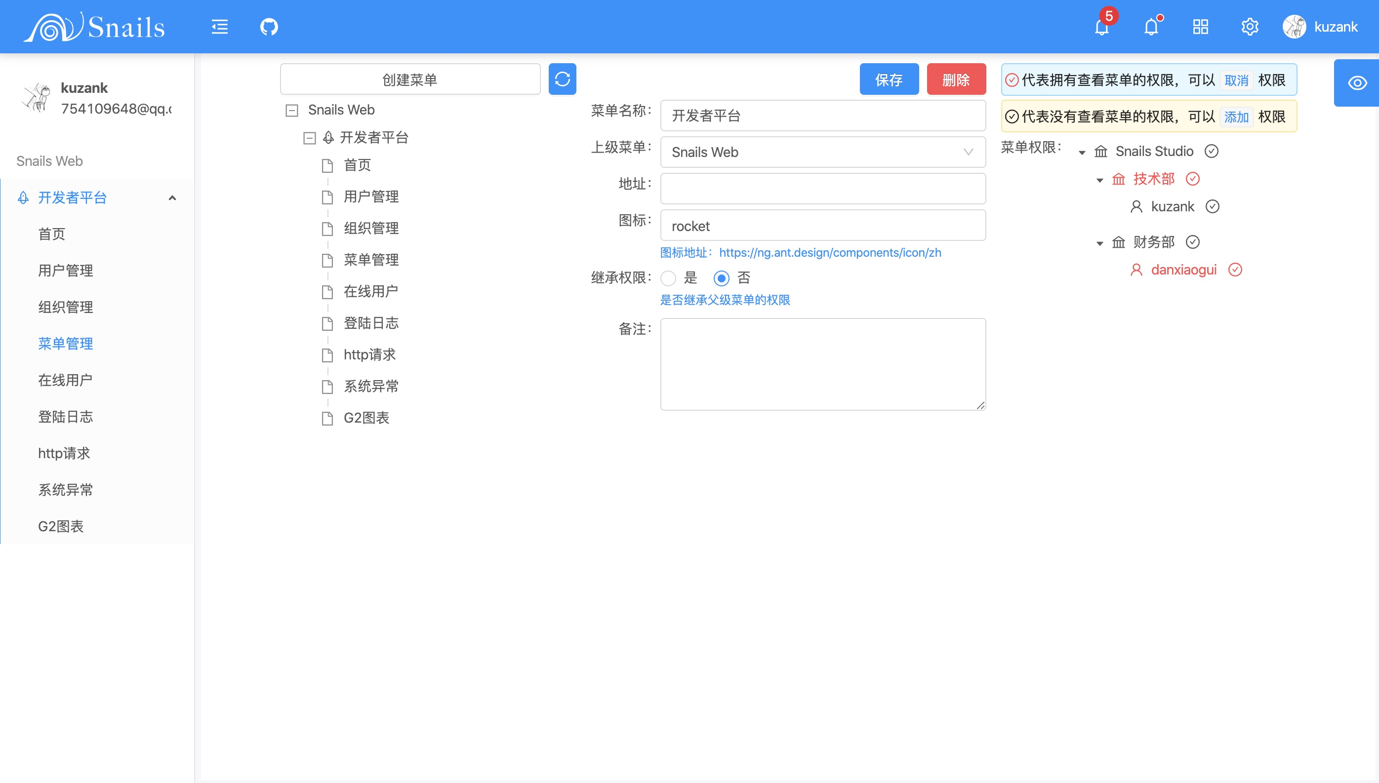 Snails 目前已支持后台管理系统的基本通用功能,未来会将