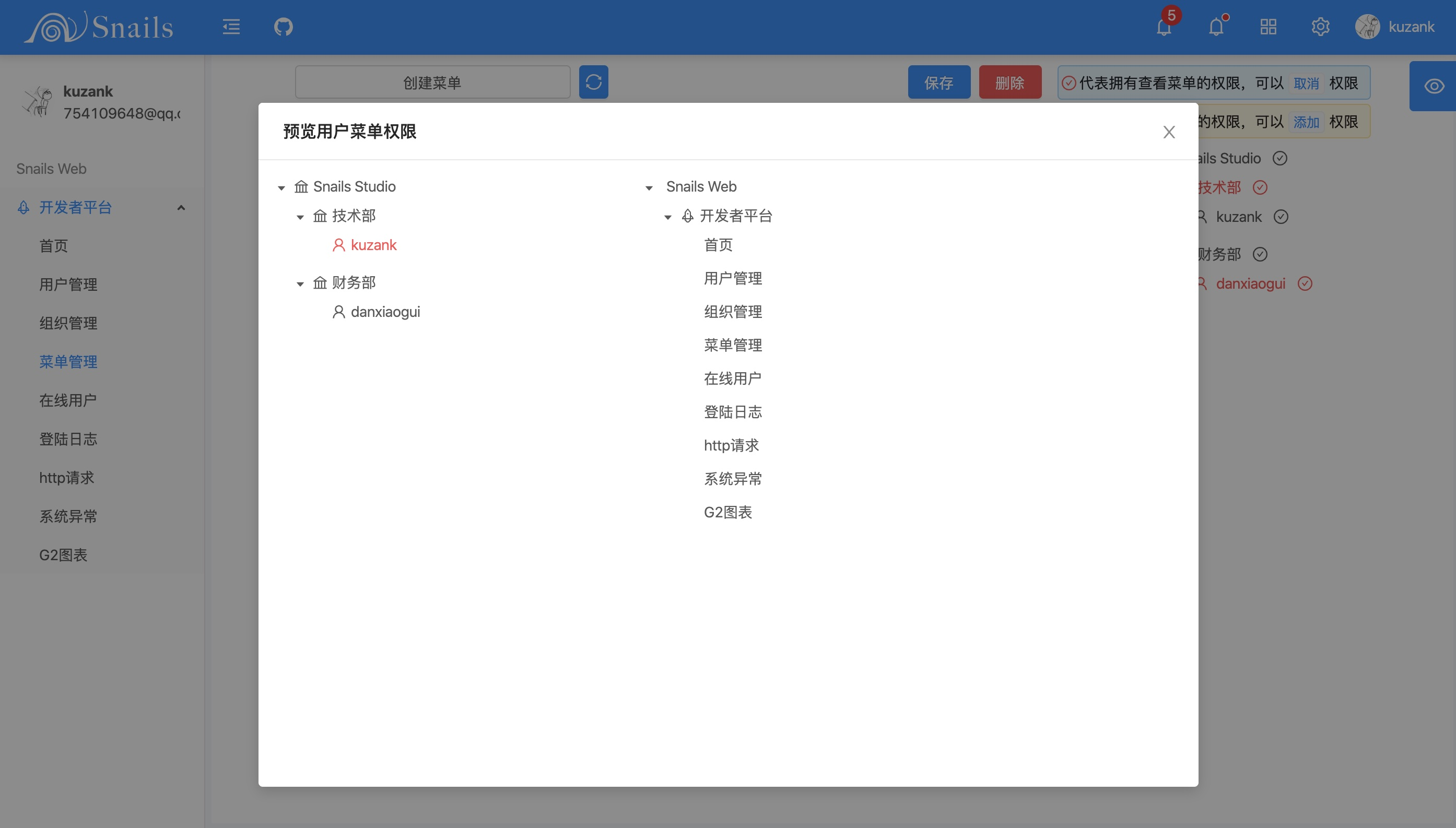 用户菜单权限预览