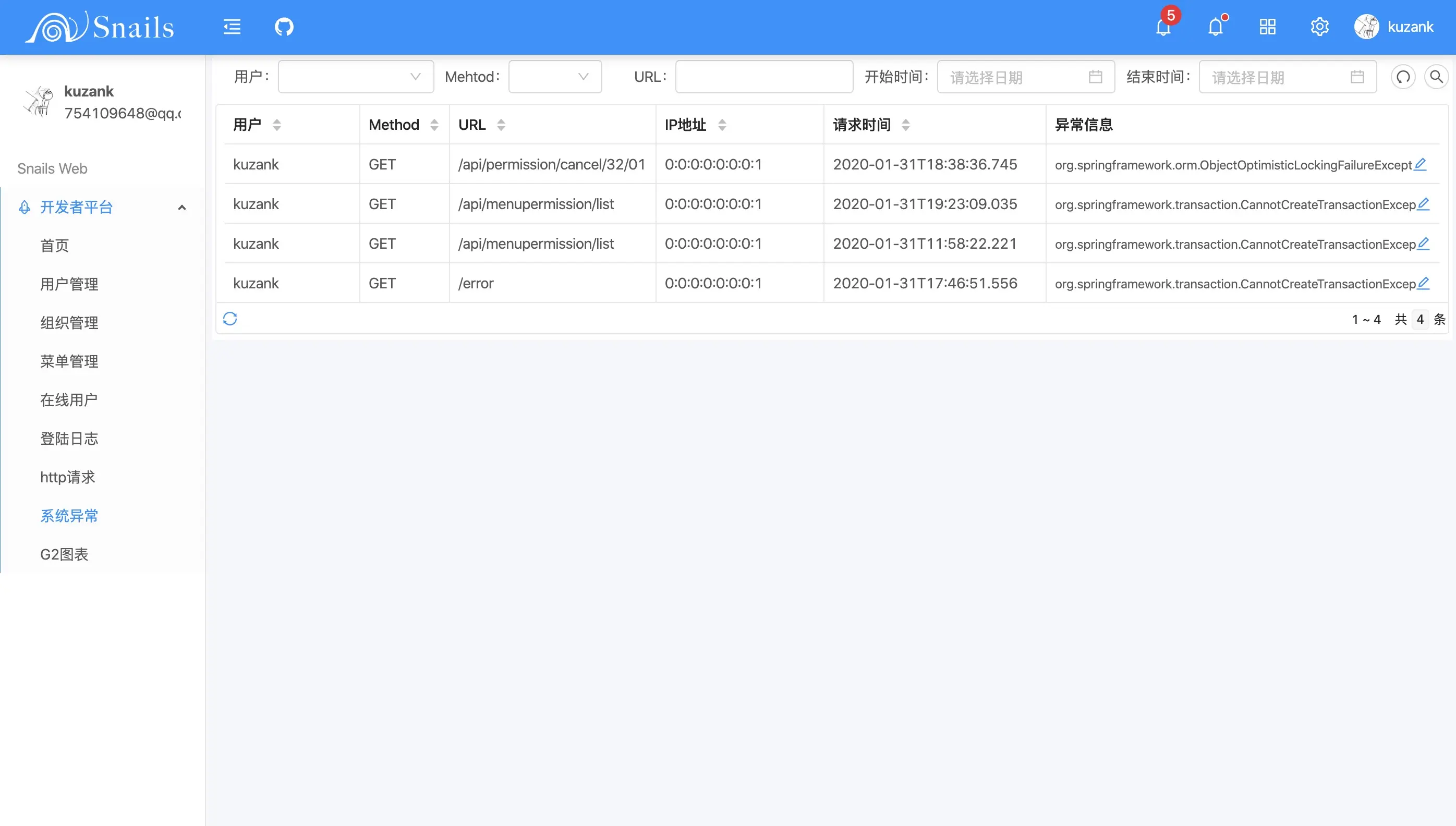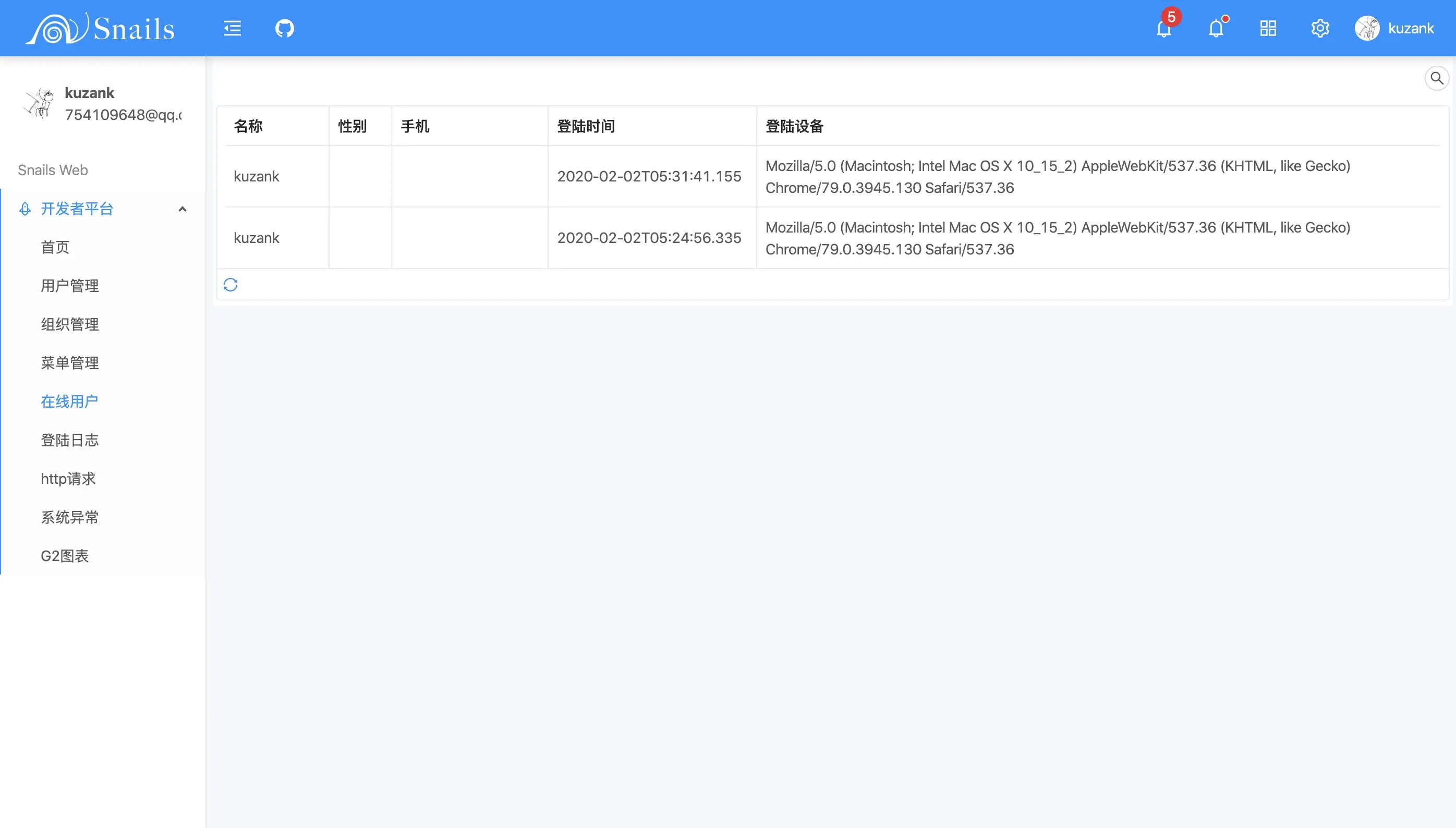 | Snails-api 后台 | gitee.com/kuzank/snai… | github.com/kuzank/snai… |