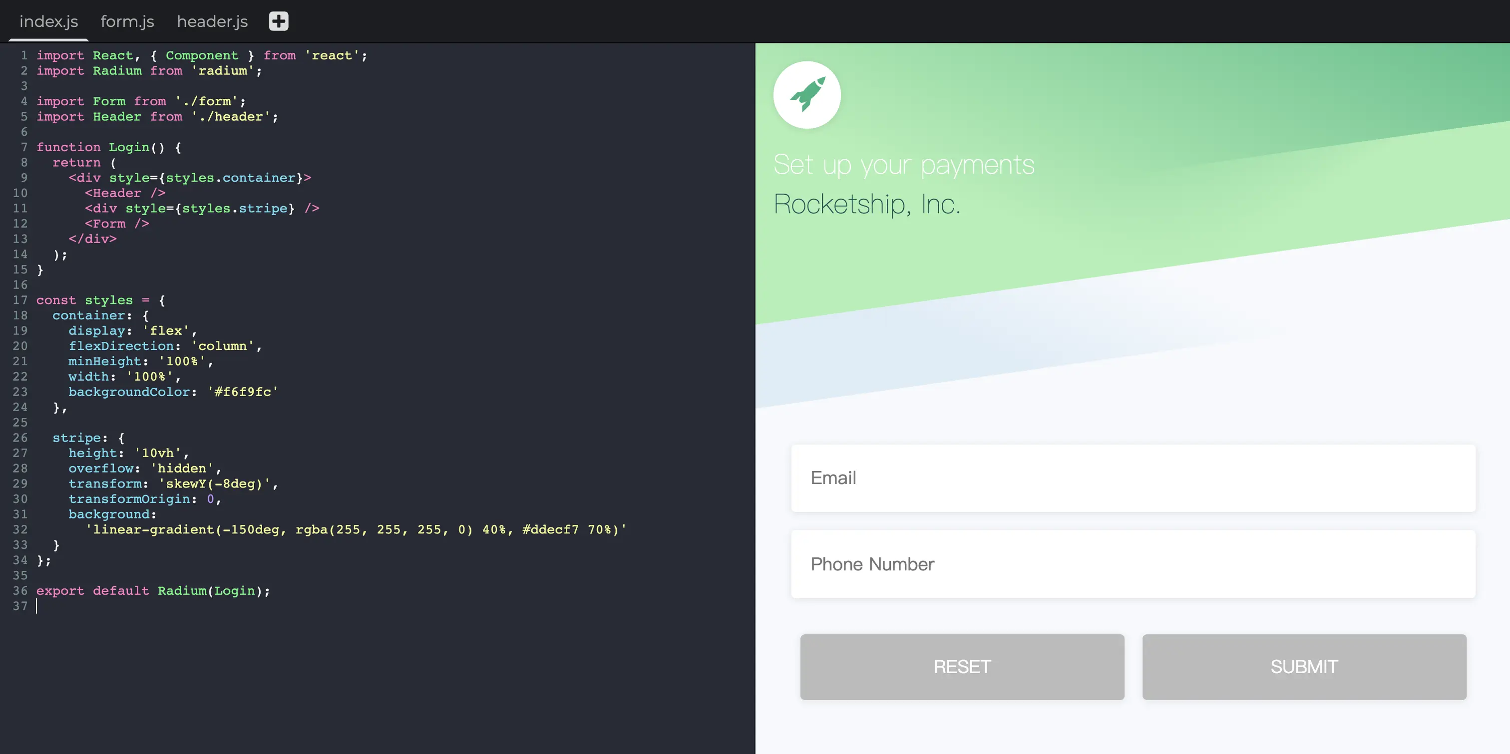 Radium是由FormidableLabs创建的在github上有超过7.2k star的CSS-in-JS库。Radium和styled-components的最大区别是它生成的是标签内联样式(inline styles)。由于标签内联样式在处理诸如media query以及:hover,:focus,:active等和浏览器状态相关的样式的时候非常不方便,所以radium为这些样式封装了一些标准的接口以及抽象。