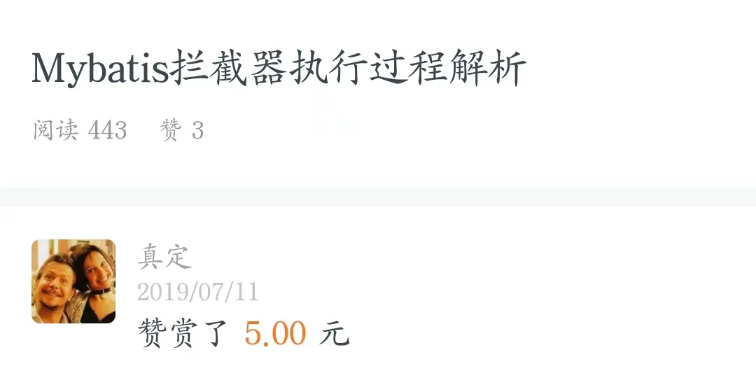 2019 年 7 月 11 日,突然收到一个赞赏通知,开始我以为是朋友的安慰,反复确认后,才发现这就是读者朋友的赞赏,那一刻我觉得我是百万富翁,怀着无比激动的心情回复「我会努力输出高质量原创内容」
