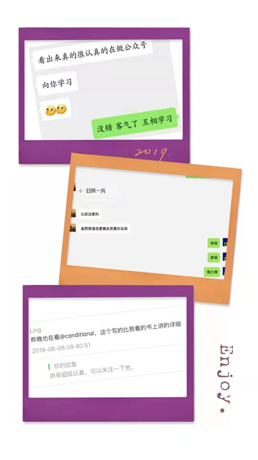 这个信仰让我勇于与他人交流,进行思想碰撞,甚至产生 1+1>2 的效果,乐于分享也让我收获颇多快乐,你会发现,每个个体的思想真的很奇妙