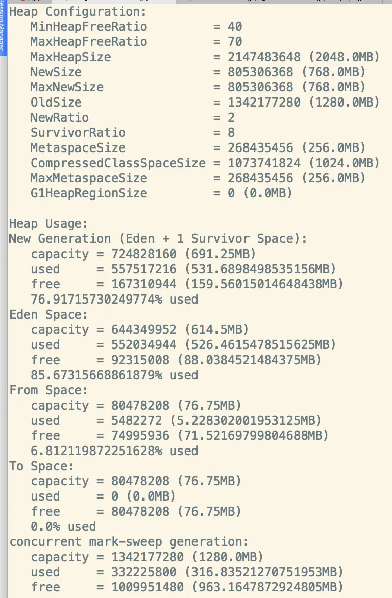 在来看下当前jvm内存相关信息(jmap一下)