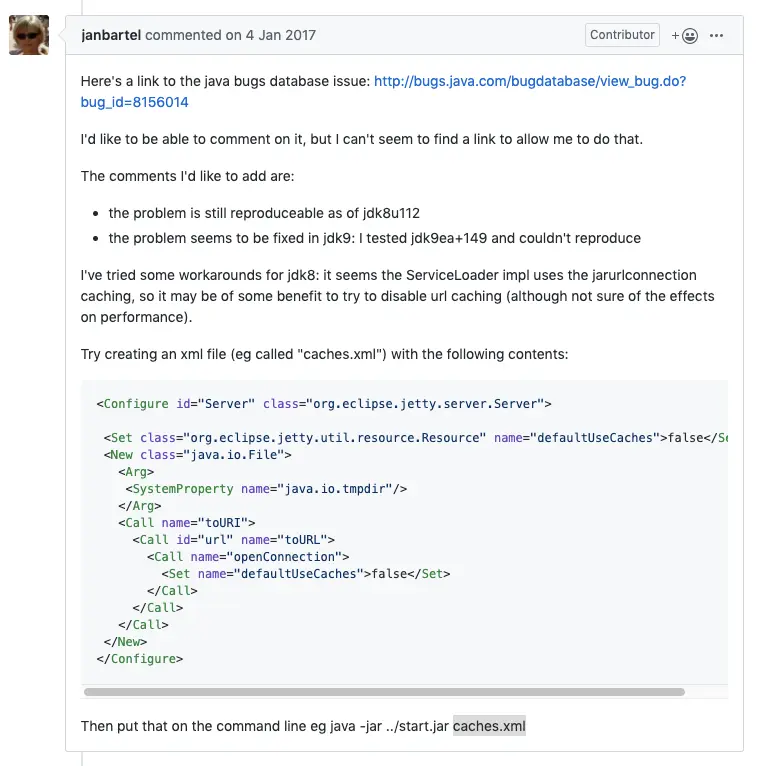 jetty大佬说这不是jetty的问题,是jdk8的bug,建议升级jdk(还是个酷酷的妹子?),说是想和oracle讨论,但是没找到啥渠道,测试1.9不再存在这个问题