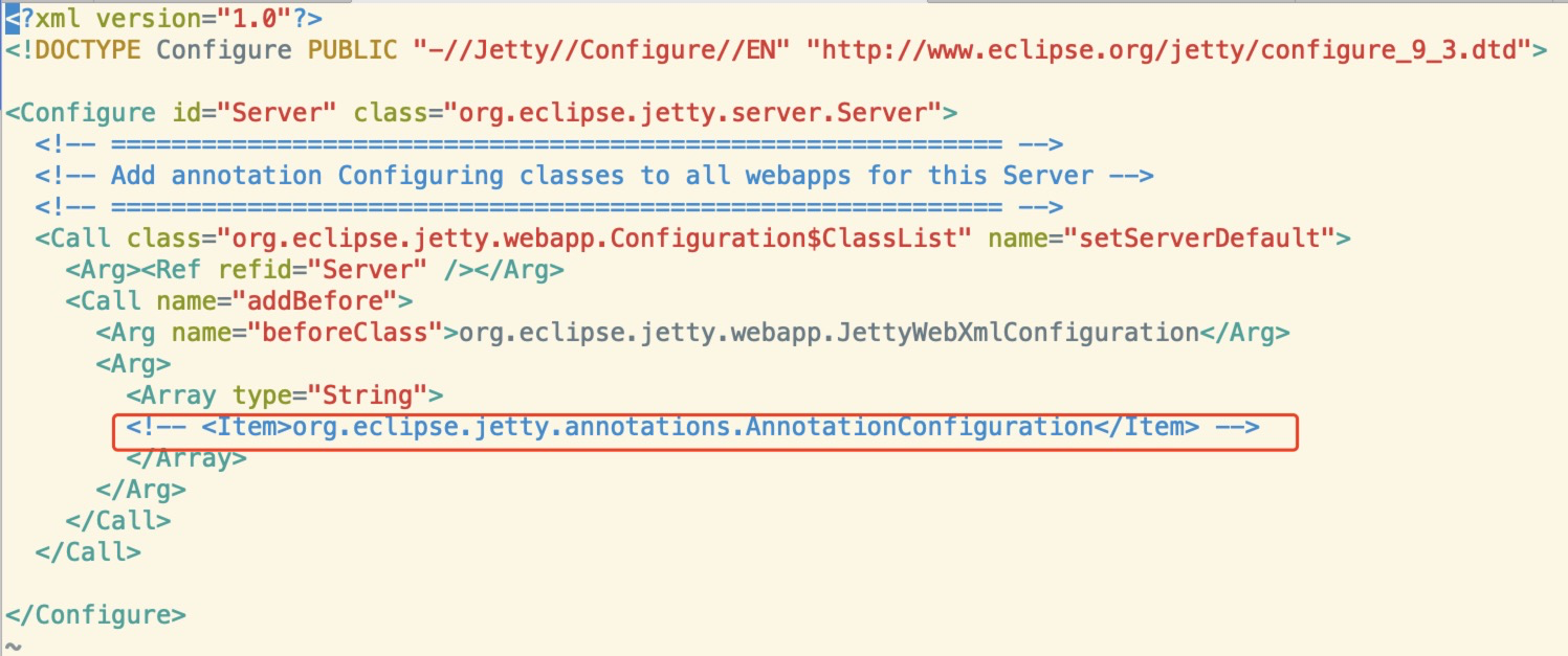 查了下jetty相关资料,jetty的这个支持是在jetty-annotations.xml里面配置的,来去掉试下。