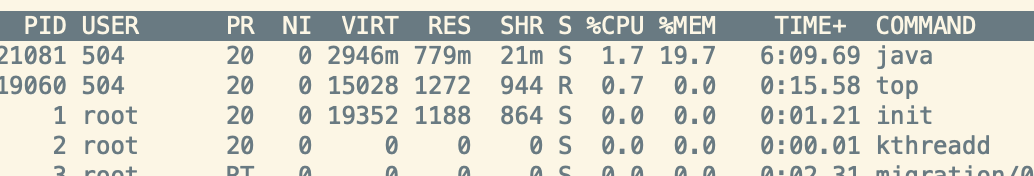 28295 503 20 0 7047m 2.3g 19m S 1.3 61.4 43:16.25 java