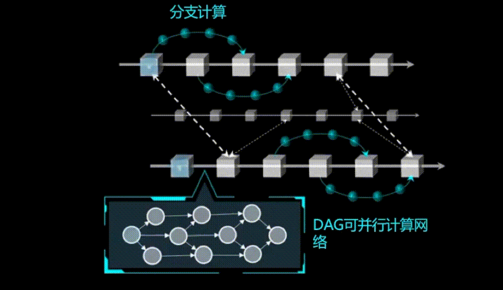 百度超级链之所以能实现如此高并发,在于革新了传统的线性计算网络的方式,采用区块链立体网络,支持大量的平行区块链去运行,而每条区块链中又支持链内并发和侧链技术的应用。其中链内DAG并行技术,让事务可以并行处理,充分利用了计算机多核和多机的计算资源,从而大幅提高区块链的处理性能。
