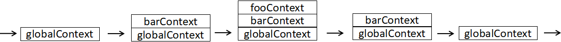 2.2节中所述,执行bar函数前,创建bar函数执行上下文,并推入执行上下文栈中。