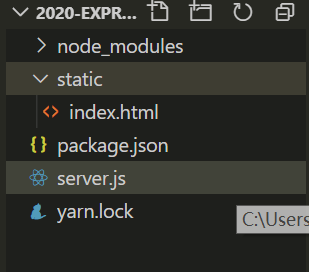 server.js同级下新增文件夹static,里面创建一个index.html文件,文件结构如下