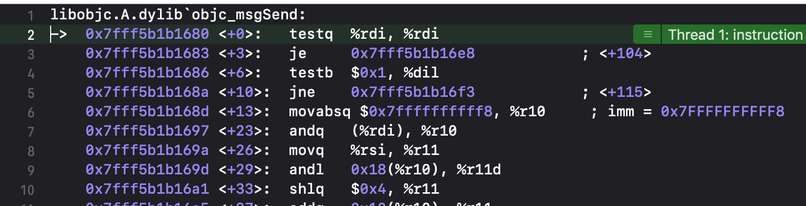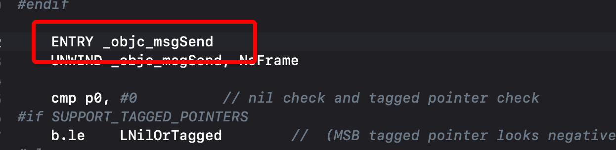 这个时候我们跟进去了 接着我们发现跟不进去了。这个时候我们跟一下苹果官方开源的objc750 源码,我们在汇编代码里面找到了这么一句话。