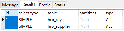 SELECT * from hro_city where code=’0200’; --使用索引