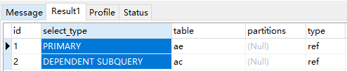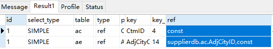 常量类型,当使用主键或唯一索引进行查询且只匹配到一行时,连接类型是const