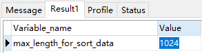 可用命令查看Mysql的max_length_for_sort_data大小:show GLOBAL VARIABLES like 'max_length_for_sort_data'
