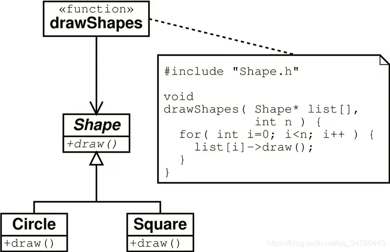 - drawShapes不是封闭的,当其被其他模块调用时,如果要增加一个新的图形需要修改switch/case
