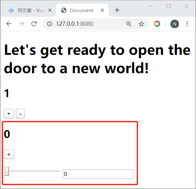 得到的效果是,拖动拖拽条数字改变,按钮使数字改变时拖拽条也会跟着移动。
