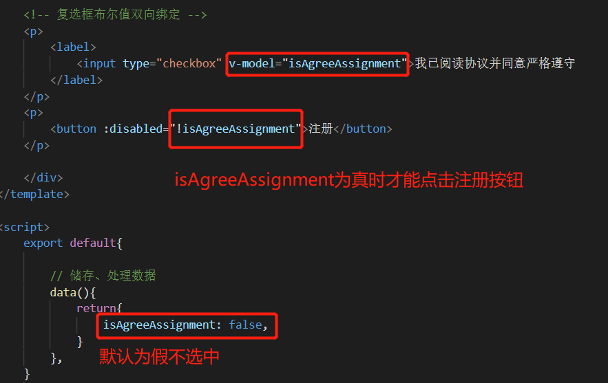 复选框布尔值双向绑定: