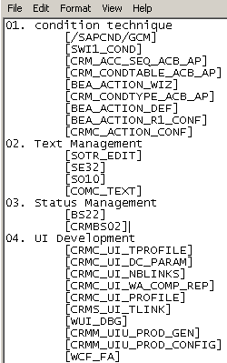 上图的01. 02. 03开头的内容代表的是SAP GUI里生成收藏夹的文件夹名称,方括号内即事务码本身的值。操作记事本,比用鼠标在SAP GUI里做拖拽操作轻松多了,不是吗?