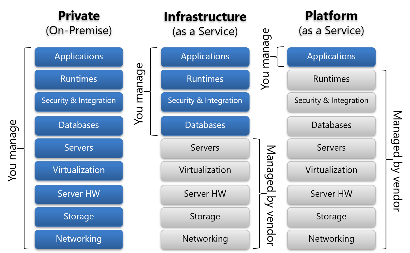 对IaaS中的managed by线做了轻微调整(延伸出一部分到Operating System层),表示IaaS中的O/S层是共同维护的,云供应商提供基础了VM镜像,但用户还需要维护其补丁和更新